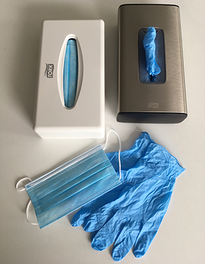 Салфетки, маски, перчатки надежно защищены внутри диспенсера