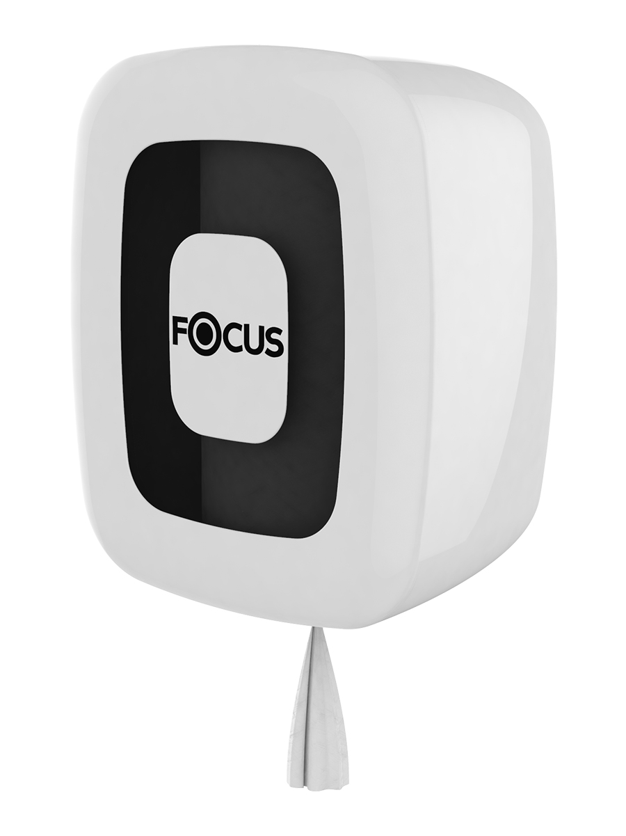 Диспенсер Focus / Фокус для бумажных полотенец с центральной вытяжкой, белый пластик