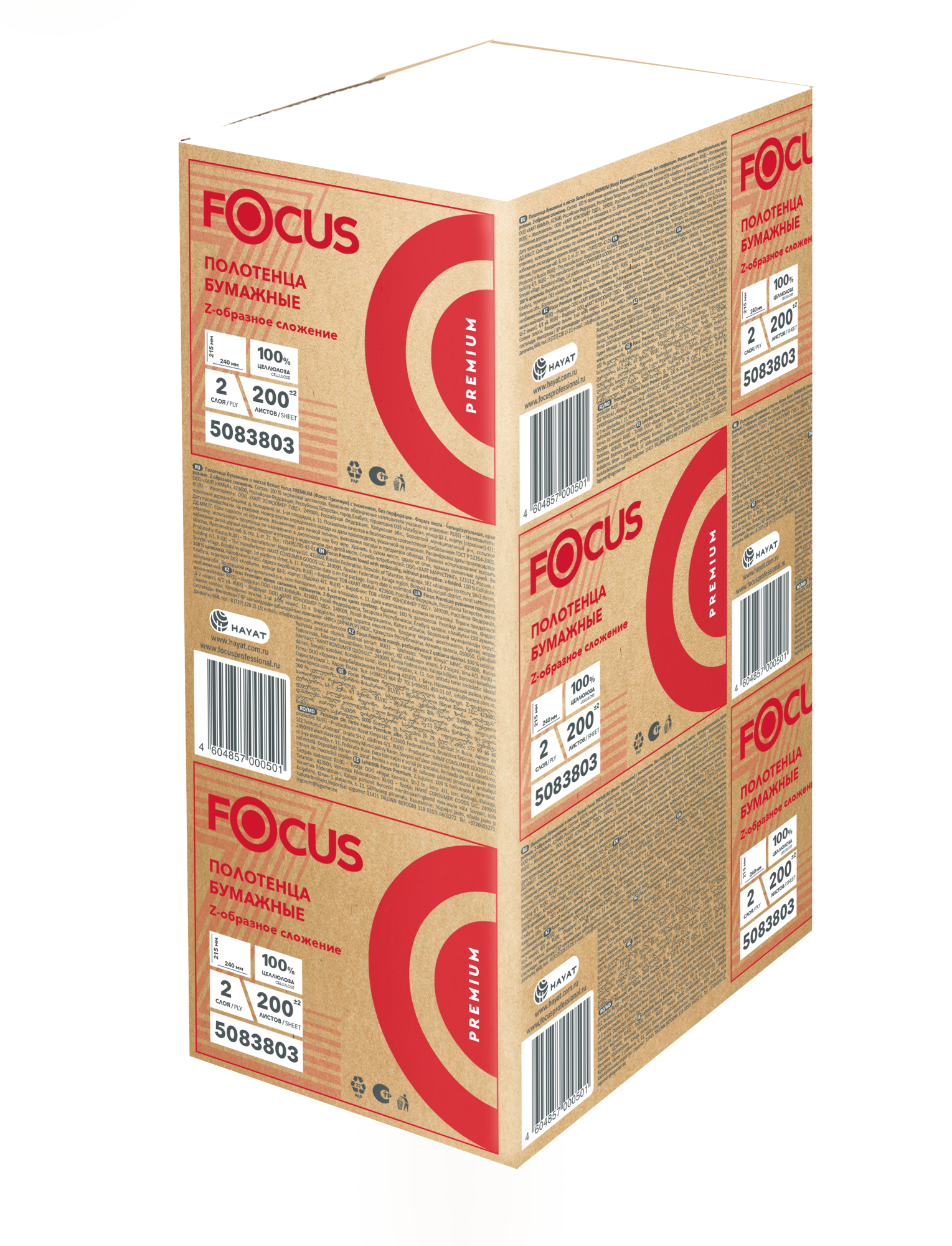 Полотенца Focus / Фокус в листах, Z, 2сл., 200л., 24*21,5см. H2, 20уп./стяж.