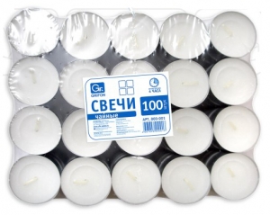 Свеча чайная в гильзе, 3 часа горения, белая, эконом, 100шт./уп.,