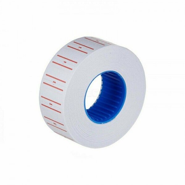 Этикет-лента 21*12мм., белая с красной полосой, 10рул./уп.
