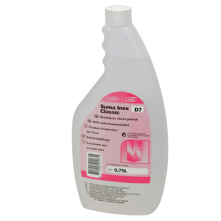 D7 Suma Inox cредство для ухода за нержавеющей сталью, глянцевый блеск, 0.75л., 6шт./уп.