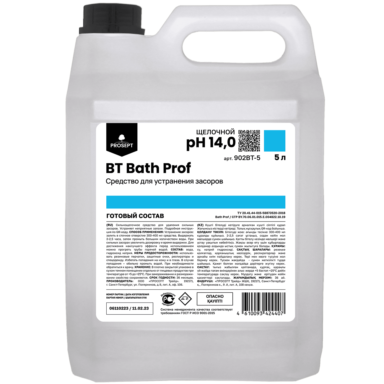 Просепт Bath Prof+ / Бас проф+ Крот усил. сильнощ. чистящее ср-во для устранения засоров, 5л.