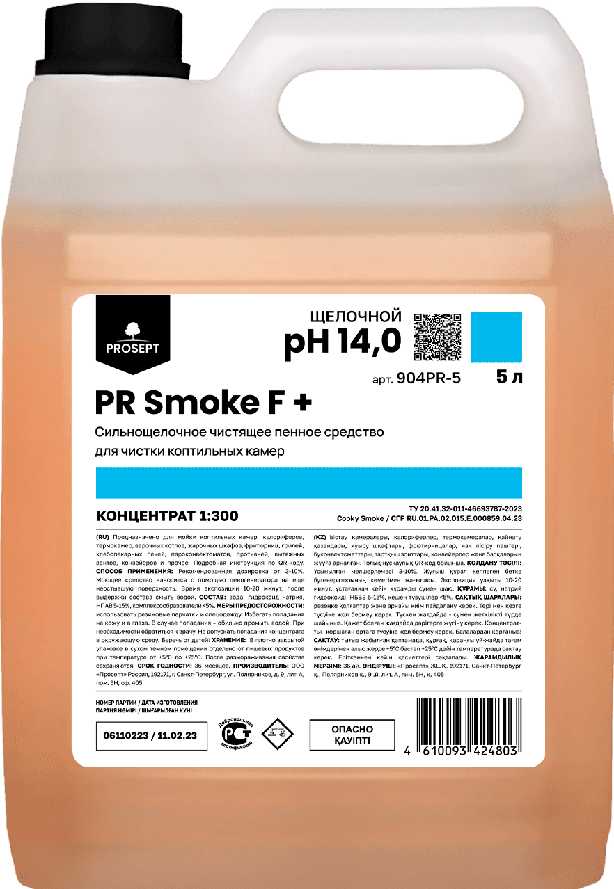 Просепт "PR Smoke F+" сильнощелочное чистящее ср-во для чистки коптильных камер , 5л.,Концентрат