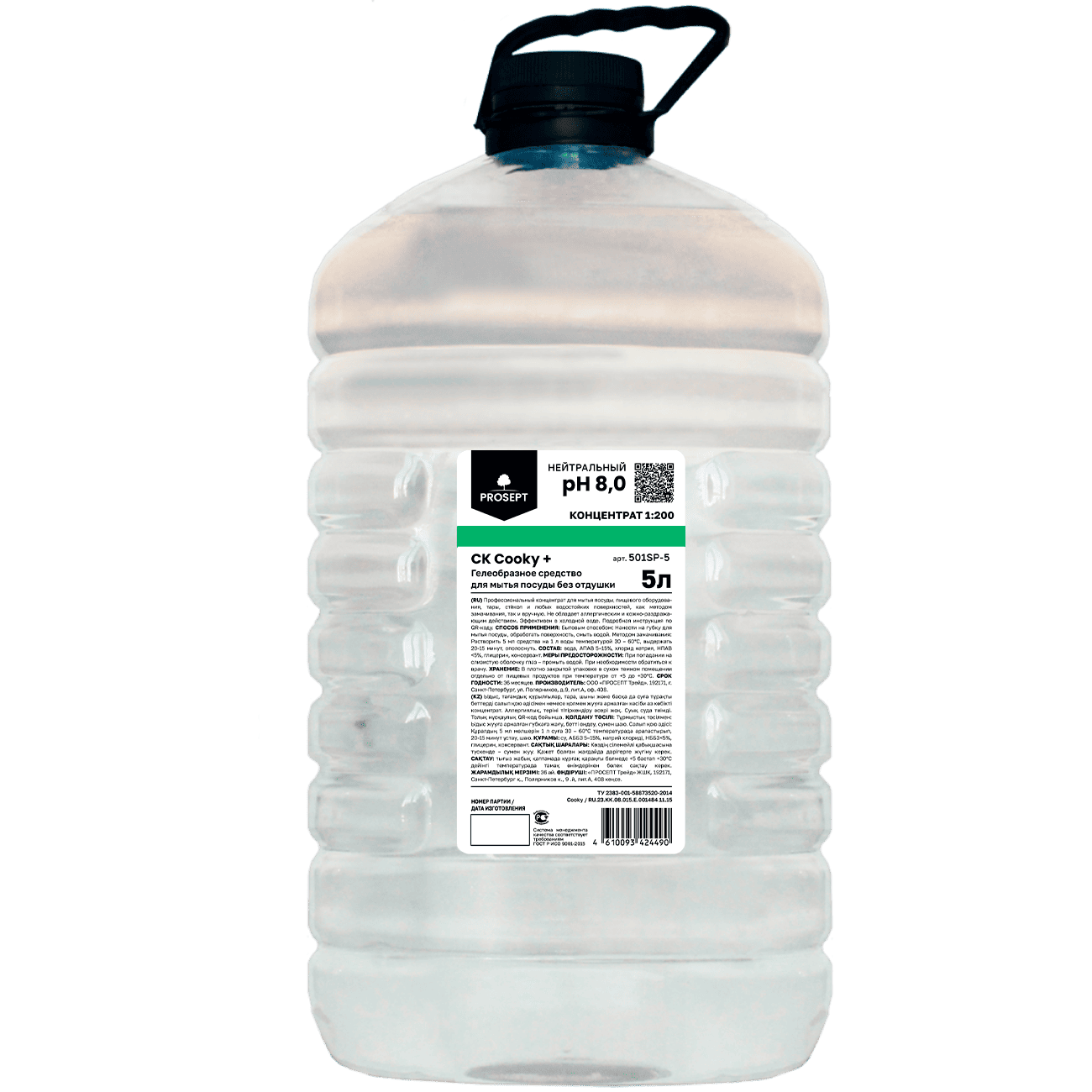 Просепт CК Cooky+ /Куки+ пенное ср-во для мытья посуды, прозрачное, гелеобр., без запаха, ПЭТ, 5л.