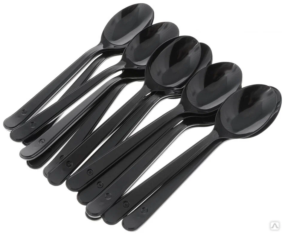 Ложка столовая Премиум, черная, одноразовая, 18см., 50шт./уп., 30уп./кор.