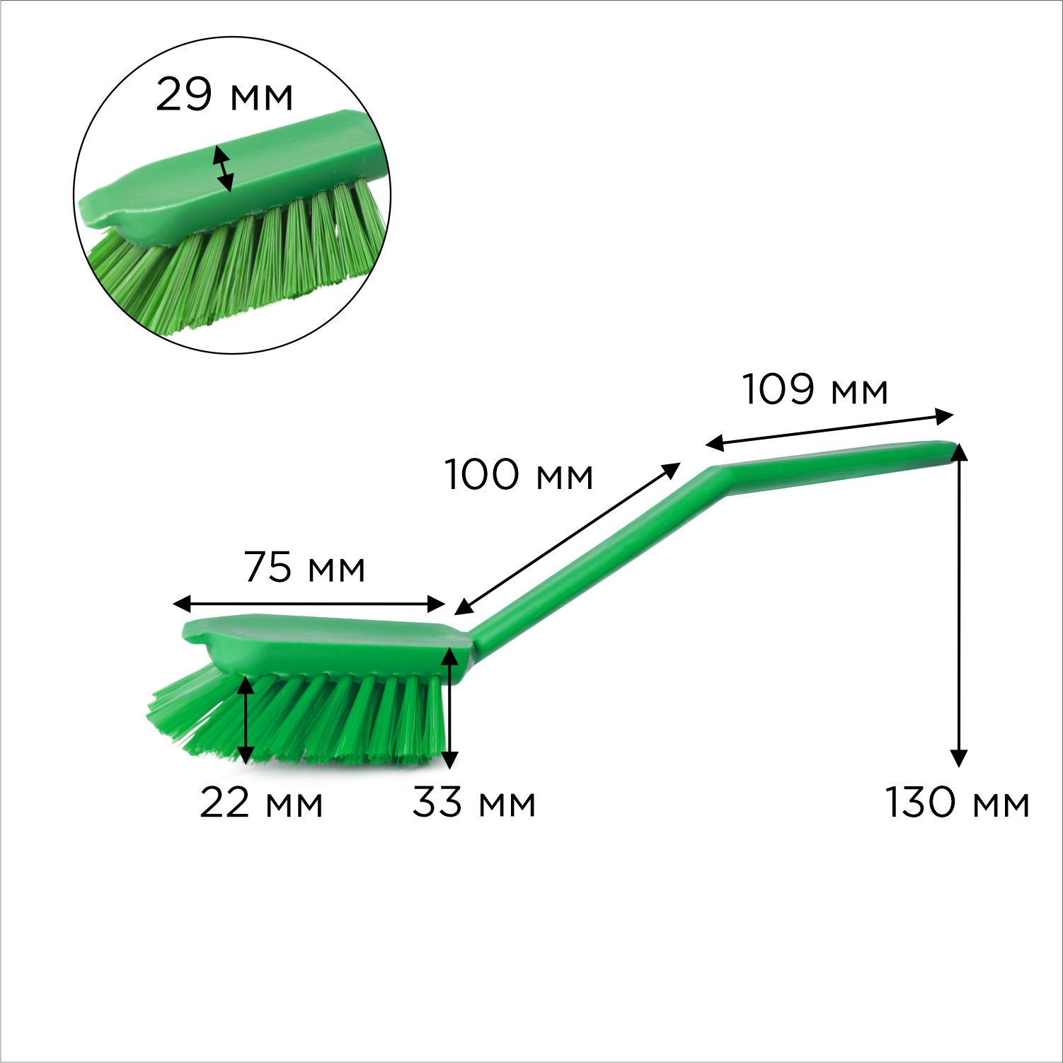 Жёсткая щетина, расположенная под углом, обеспечивает эффективную очистку поверхности без её повреждения.