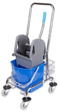 Тележка уборочная 1ведерная*23л, с вертикальным отжимом, рама метал. хром, с корзиной
